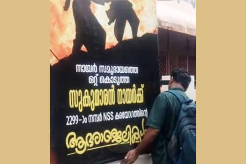 "നായര് സമുദായത്തെ ഒറ്റുകൊടുത്ത സുകുമാരന് നായര്ക്ക് ആദരാഞ്ജലികള്"; വീണ്ടും ഫ്ലക്സ്