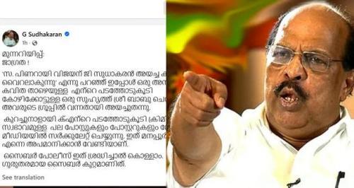 "എന്റെ പടത്തോടുകൂടി ഒരു അസഭ്യ കവിത പ്രചരിക്കുന്നു'; ഫേസ്ബുക്ക് കുറിപ്പുമായി ജി. സുധാകരൻ